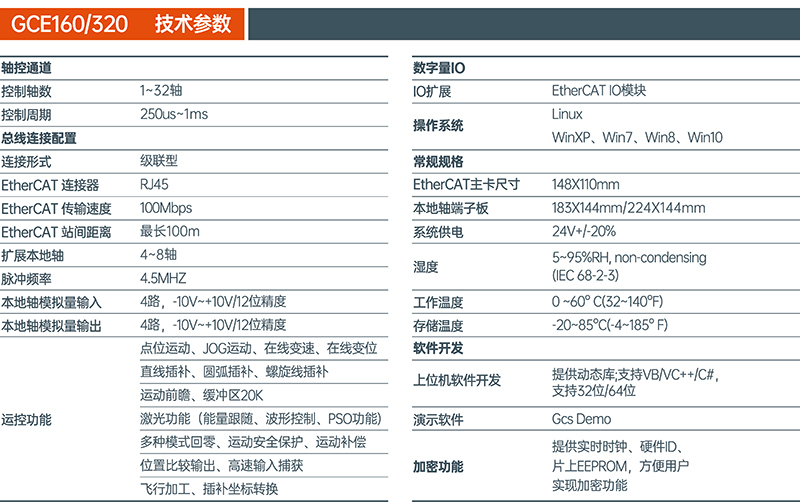 提供完善的运动控制功能:支持任意2轴直线、圆弧、椭圆插补,支持任意3轴空间圆弧插补/空间螺旋线插补、4-8轴直线插补,双坐标飞行插补,跟随插补运动等。