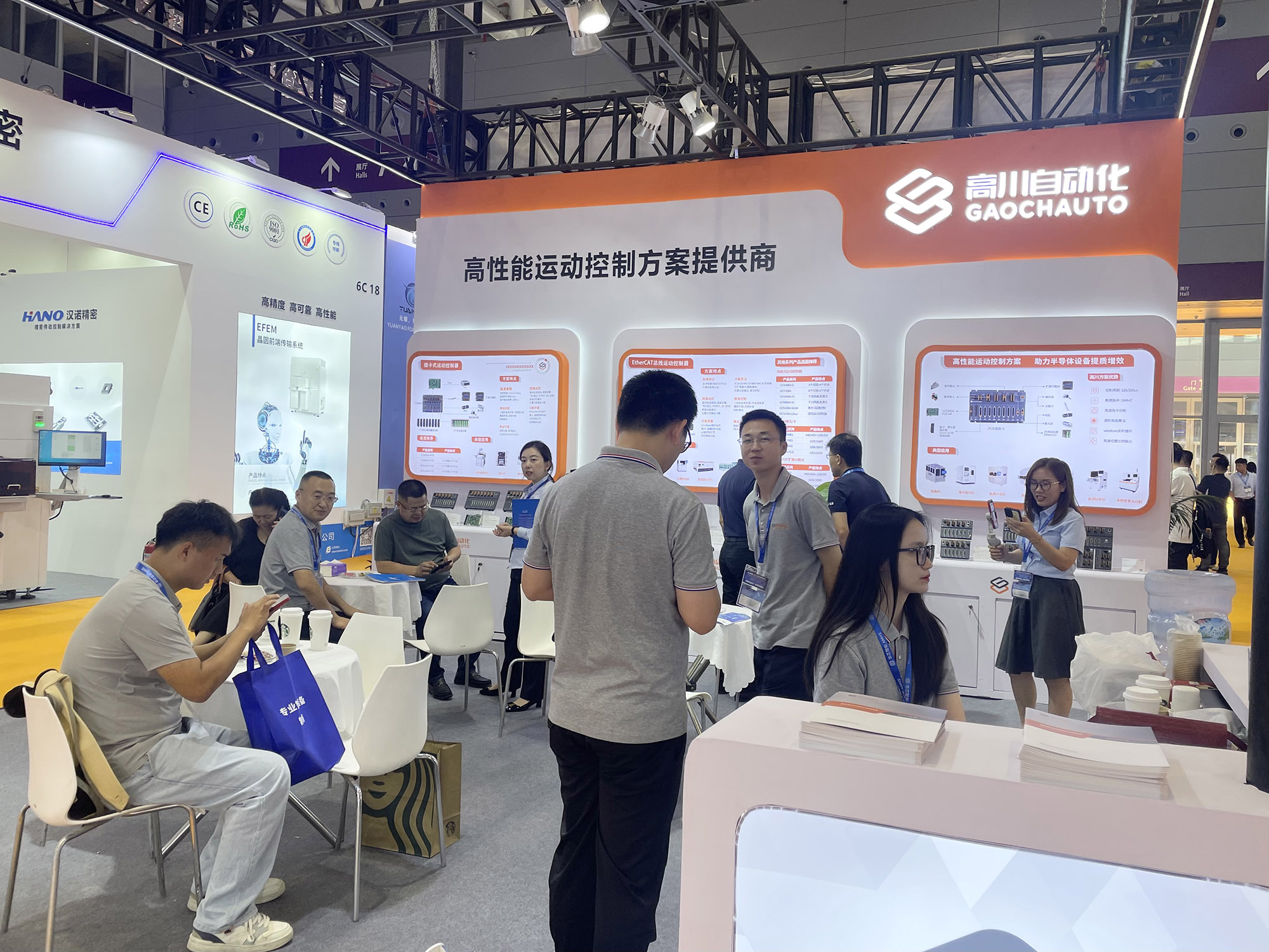 在此次展会上,高川自动化展示了一系列高性能运动控制产品和解决方案,吸引了众多来自各地的专业观众前来参观和咨询。公司团队为客户耐心讲解,让客户深入了解了高川自动化高速高精的运动控制方案在半导体设备上所具备的优势,助力半导体设备提质增效。
