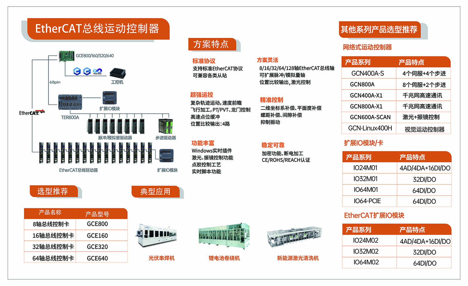 公司产品主要包括:插卡型运动控制卡、网络型运动控制器、EtherCAT总线型运动控制卡、行业定制运动控制器等。